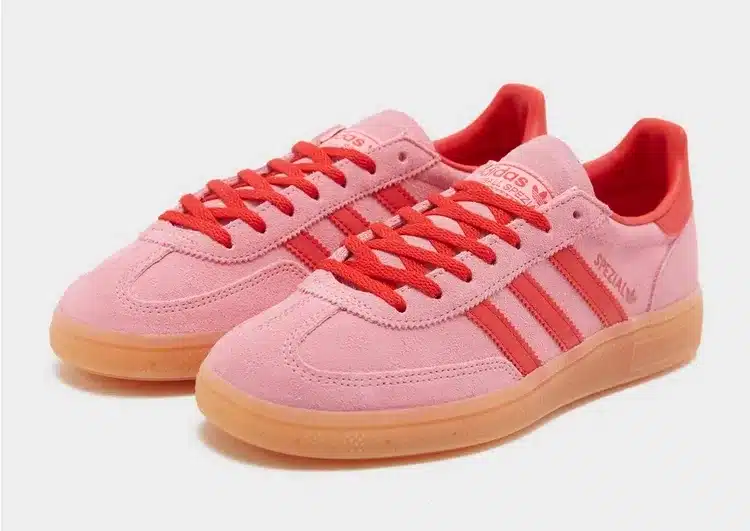 Este icónico modelo retro llega en una vibrante combinación de tonos rosa pastel con acentos en rojo intenso, ofreciendo un look fresco y llamativo. Fabricadas con una cuidada mezcla de ante suave y piel sintética en la característica puntera en forma de “T”, aportan un toque vintage inconfundible. En el interior, cuentan con plantilla acolchada para mayor comodidad, mientras que la suela de goma tipo Gum con dibujo clásico asegura un agarre excelente. Detalles laterales con diseño de tres franjas y acabado exclusivo completan su estética atemporal.