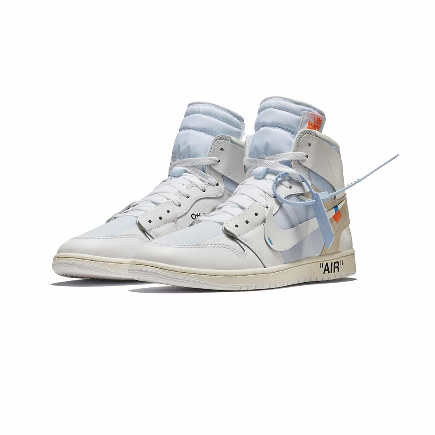 Este Off-White x Air Jordan 1 muestra materiales cortados a mano y reconstruidos con Off-White para el etiquetado Nike, junto con un logotipo exclusivo de Nike Swoosh y la marca “AIR” en la entresuela. Otros detalles notables incluyen la marca en los cordones y el año ’85 en la solapa interna del tobillo.