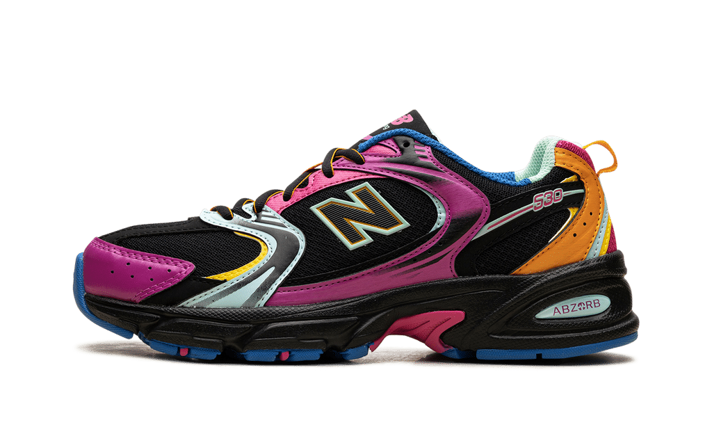 The New Balance 530 Black Multi-Color combines the retro design of classic 2000s runners with a modern, vibrant touch. This model stands out for its bold look, featuring a black base contrasted by multicolored details that add personality and style to the sneaker.